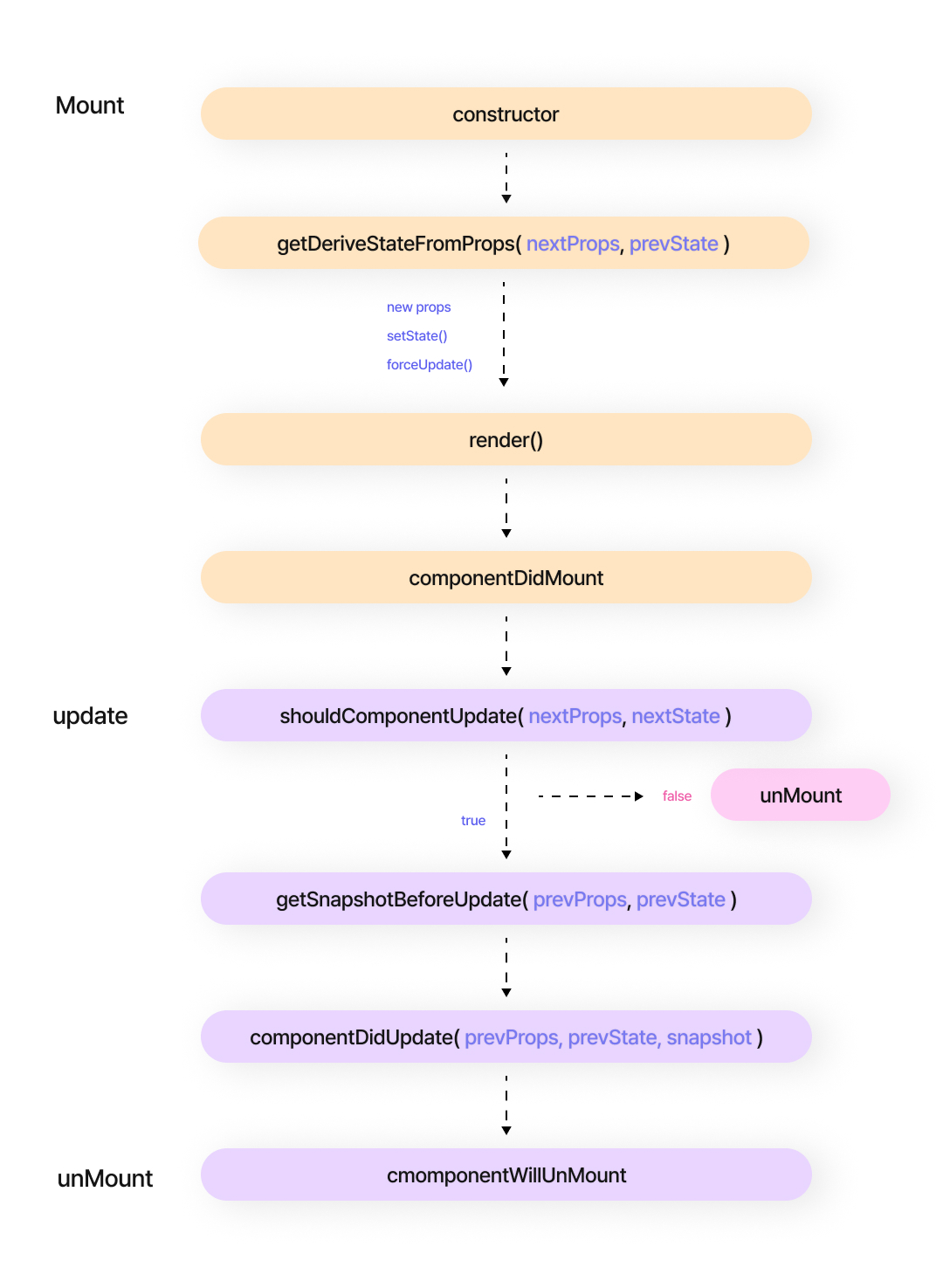 - shouldComponentUpdate: true를 리턴 시 다음 라이프사이클 메소드가 계속 실행하게 해준다.