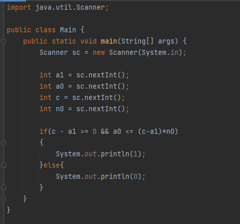 - 이러면 c - a1 >= 0 그리고 a0 <= (c - a1) x n의 두가지 조건이 만족해야 한다.